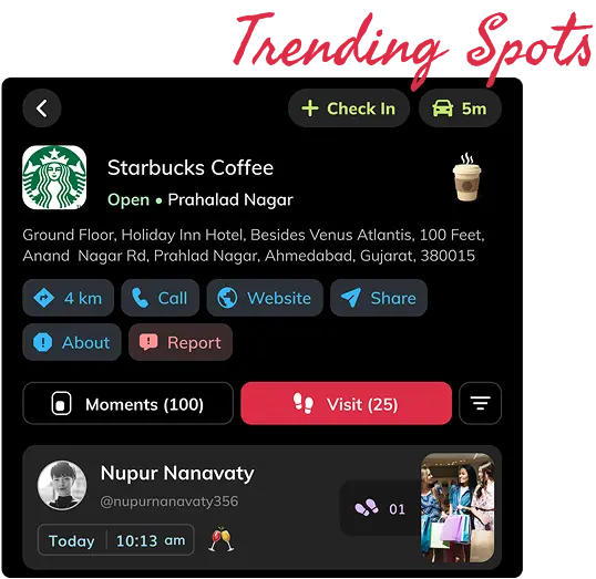 Discover how Check out real-time footfalls, live moments, and trending spots near you.