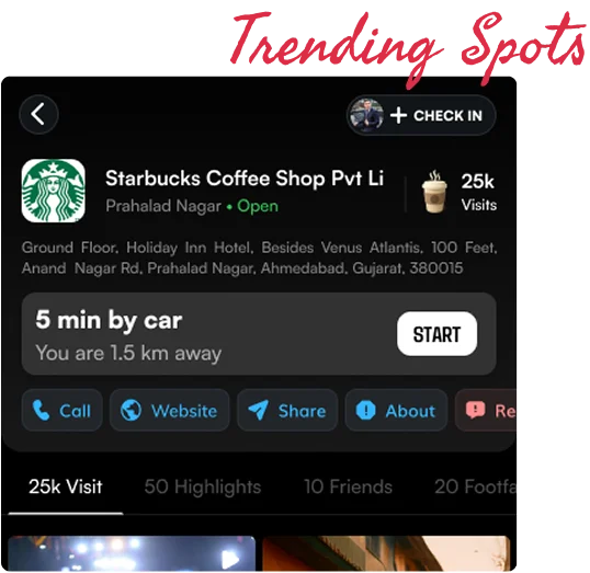 Discover how Check out real-time footfalls, live moments, and trending spots near you.