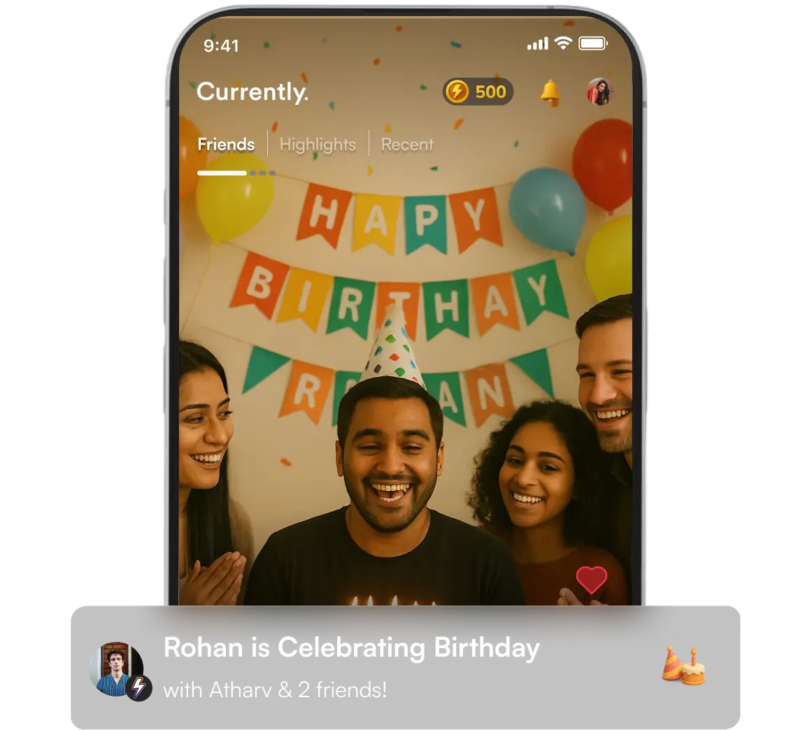 To invite your friend's to join the Currently app, open the app and click on the Currently Coins icon located at the top right, next to the notification (bell) button...